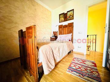 AMBIENTI; Ingresso sul soggiorno con cucina open in affaccio su verde privato, al piano primo due camere una matrimoniale e una 3/4 entrambe con balcone oltre a bagno con vasca.