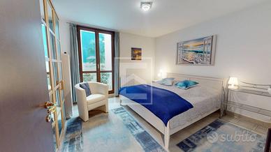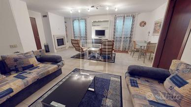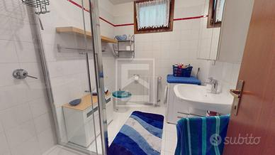 L'interno dell'abitazione è distribuito su due livelli: al piano terra di quasi 90 mq troviamo un ampio soggiorno con angolo cottura, salotto e zona pranzo. Da qui si accede ad un corridoio che conduce alle due camere da letto e al bagno finestrato. Al piano seminterrato, a cui si accede tramite una scala interna, si trovano una spaziosa taverna con camino, un ripostiglio, un bagno con lavatrice e due camere da letto. Nonostante siano seminterrate, le stanze...