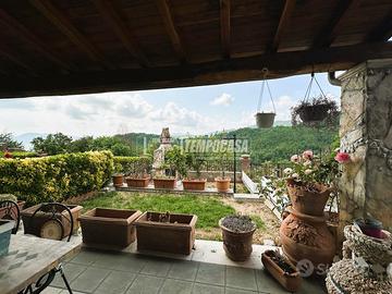 L'immobile si sviluppa su tre livelli, con ambienti ben distribuiti e luminosi. Al piano terra si viene accolti da un ampio salone di circa 50 mq, ideale per vivere momenti conviviali in famiglia o con amici, una cucina abitabile, un bagno e un comodo garage di 16 mq con accesso diretto all'interno. Dallo stesso livello si accede a un giardino terrazzato di circa 44 mq, uno spazio curato e suggestivo che affaccia sulle colline circostanti, regalando scorci di rara bellezza e tranquillità.