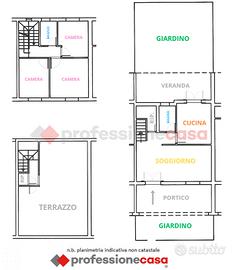 Al piano terra troviamo un'ampia zona living, una cucina abitabile, un ripostiglio, un bagno e una veranda con infissi a fisarmonica che si affacciano su un'ampia terrazzino;