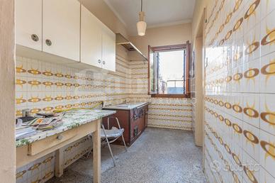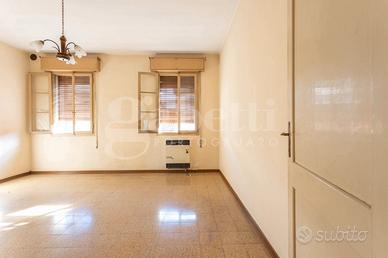 L'ingresso avviene direttamente sul soggiorno, con cucinino e tinello. Completa il piano una spaziosa cantina con accesso esterno che, in ottica di ristrutturazione, potrebbe essere integrata per ampliare la zona giorno.