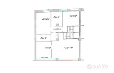 - Al piano 1°: soggiorno, cucina separata abitabile, 2 camere, 2 bagni e disimpegno.