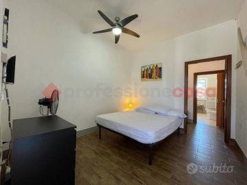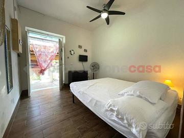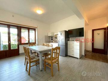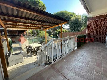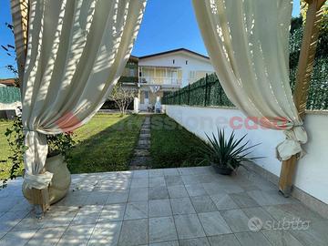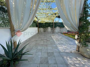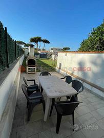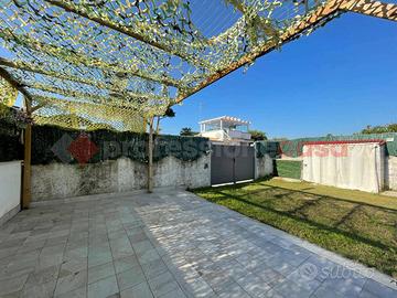 a 200 mt dal mare, proponiamo in una confortevole Porzione centrale di villa quadrifamiliare a schiera disposta su due livelli con Ampio giardino avente doppio ingresso, sia dal "Residence Trireme" e sia dal Residence Lido Aquilone", laddove l'accesso ad entrambi i comprensori è consentito anche da un sistema di citofono collegato alle utenze telefoniche, che permette di azionare il cancello condominiale anche a distanza.