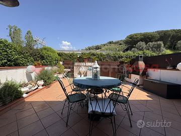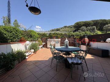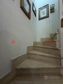TERRACINA-VIA LA NEVE: ad 1 km circa dal centro della città, in zona servita e residenziale, proponiamo in esclusiva la vendita di una villetta a schiera di 90 mq disposta su tre livelli con giardino pavimentato di circa mq 50. Situata all'interno di un residence chiuso da cancello automatico, la villa si presenta in buone condizioni. L'ingresso avviene con apertura sia carrabile che pedonale all'interno del giardino pavimentato dove trova spazio una zona barbecue e possibilità di posizionare un tavolo con sedie per momenti di convivialità all'aria aperta. Percorrendo lo spazio esterno troviamo un balcone che fa da ingresso all'interno della casa. Appena entrati un elegante salone occupa la parte del piano terra, caratterizzata da ampie vetrate prospicienti il patio e il giardino privato. Salendo al piano superiore, una originale scala con illuminazione porta verso la zona notte riservata agli ospiti, composta da due ampie camere da letto con uscita su balconata ed un un bagno. Nella parte sottostante il piano intermedio si trova il rustico della casa composto da soggiorno e cucina a vista oltre a bagno e ripostiglio. Sullo stesso livello trova spazio una corte esterna attrezzata con cucina e zona lavanderia. L'armonia dei suoi spazi interni e le finiture di pregio donano alla proprietà una naturale raffinatezza e originalità rendendola un'ottima soluzione per una selezionata clientela. Completa la proprietà la possibilità di parcheggio di un'auto.