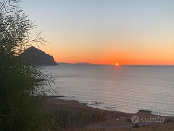 mq circa più spazi esterni ristrutturata, su due livelli , due camere matrimoniali, soggiorno /cucina un bagno con doccia, giardino fronte e retro, terrazzo panoramico vista mare piano superiore fronte spiaggia Macari San Vito lo capo