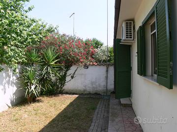 Roma - Casal Palocco, Consorzio 'La Franchina", villa a schiera di 100 mq su un unico livello con piano rialzato ed ampio giardino su due lati, in splendida posizione di fronte alla pineta di Castel Fusano, a meno di dieci minuti di auto dal mare, con esposizione principale a sud-ovest, quindi estremamente luminosa a tutte le ore del giorno.