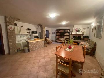 Al piano terra troviamo un ampio ed elegante soggiorno, una cucina abitabile con camino, due camere da letto matrimoniali di cui una con cabina armadio, un bagno ed un disimpegno; al piano primo troviamo una sala hobby, una camera matrimoniale ed un bagno; al piano seminterrato un'ampia taverna con cucina in muratura e camino, una camera singola ed un bagno.