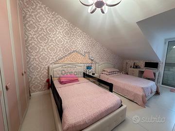 Proponiamo in vendita villa a schiera su tre livelli in parco residenziale e signorile di recente costruzione, essa si presenta in ottime condizioni, con ottime rifiniture e con una disposizione interna razionale e ben distribuita, offrendo ampi spazi e comfort. La soluzione è composta al piano seminterrato da: ingresso in box auto, tavernetta con cucina e 1 accessorio, con scala interna che collega l' abitazione; e all' esterno spazio antistante di circa 50 mq ideale per momenti di relax e convivialità; il primo livello dispone di: ingresso in salone, cucina abitabile con balcone terrazzato e con accesso diretto al giardino, e 1 accessorio; mentre al secondo livello (mansardato) raggiungibile da una bellissima scala in marmo, vi è la zona notte che si compone da: 3 camere da letto e 1 accessorio. La villa dispone di impianto di riscaldamento a pavimento.