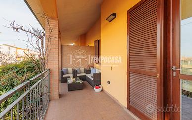 ESTERNO: contesto ben tenuto in ottima zona di recente costruzione, immersa nel verde, molto tranquilla e comoda sia a Parma che a Collecchio. La soluzione è completa di due portici da cui si accede all'interno della casa e un balcone per ogni stanza da letto, cortile comodissimo per l'accesso all'ampio garage.