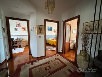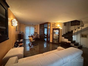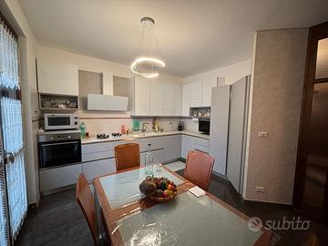 Villa a schiera in contesto residenziale benservito, mezzi, scuole e centri commerciali. Rifiniture di pregio, granito e parquet di legno pregiato. Ampie camere, box auto doppio e 2 giardini. Pannelli solari 6,3 KW con batterie di accumulo. Aria condizionata caldo/freddo. Infissi rinnovati con inferriate e zanzariere