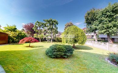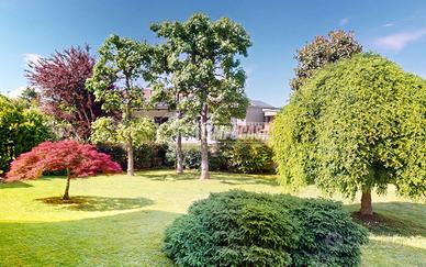 Inoltre il giardino di circa 380 mq, dispone di impianto di irrigazione e nella zona adiacente al dehor troviamo una zona con barbecue in muratura e piccola casetta in legno per deposito materiali e attrezzi da giardinaggio.
