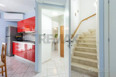 Al piano terra si sviluppa un luminoso open space con soggiorno e cucina, affiancato da un bagno e da un comodo ripostiglio. Sul retro è presente un giardino privato ideale per momenti allaperto e utilizzabile anche come posto auto scoperto.