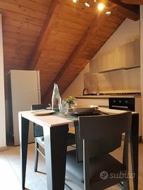 Mansarda in legno lamellare con altezza centrale di 2,50 metri, composto da ampia zona cucina e terrazzo di 5 mq.