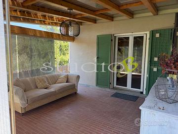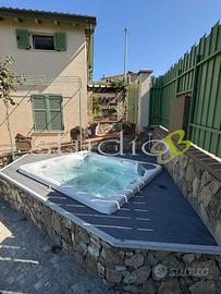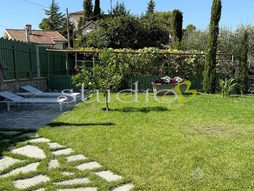 Tra i comfort moderni, la villa è dotata di pannelli solari per lacqua calda. Il giardino curatissimo include un pergolato, una zona relax con piscina e jacuzzi e unarea dedicata alla cucina estiva. Completa la proprietà un box auto.