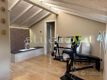 Al primo piano si trovano un disimpegno/fitness, la camera matrimoniale, un bagno con vasca e doccia e una cameretta. Il piano seminterrato ospita una cantina per vini.