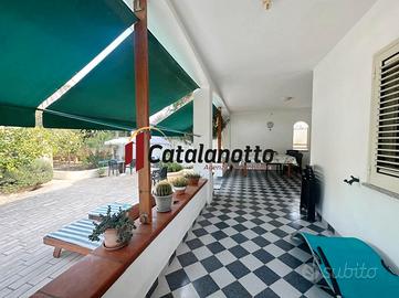 ID-16798 Immobiliare Catalanotto propone in vendita a Selinunte un'incantevole villa immersa nel verde, situata su un lotto di circa 800 mq. Un curato viale alberato conduce all'ampio spazio esterno, arricchito da una comoda veranda di circa 35 mq. L'accesso principale si affianca a un secondo ingresso sul retro della villa, che apre su un luminoso salone open space, una cucina funzionale, tre spaziose camere matrimoniali e un bagno con doccia. Sul retro dell'immobile troviamo ulteriori comfort: un garage di circa 20 mq, una cucina esterna completa di camino e zona barbecue, un secondo servizio e una scala esterna che conduce al terrazzo, perfetto per godere della vista e della tranquillità della zona. La villa rappresenta la soluzione ideale per chi desidera vivere a contatto con la natura senza rinunciare alla comodità e agli spazi generosi. Per ulteriori informazioni e per prenotare una visita non esitate a contattarci al numero