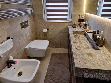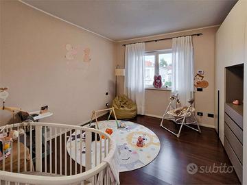 Al primo piano si sviluppa la zona notte: una camera padronale con cabina armadio con ante in vetro fumè e bagno privato con ampia doccia, arricchita da unuscita su una spaziosa terrazza, affiancata da altre tre camere da letto (una delle quali con balconcino privato) e da un bagno con vasca; dal bagno della suite padronale una porta conduce a una mansarda agibile, facilmente trasformabile in locale hobby, studio o palestra.