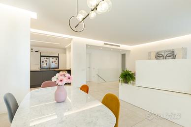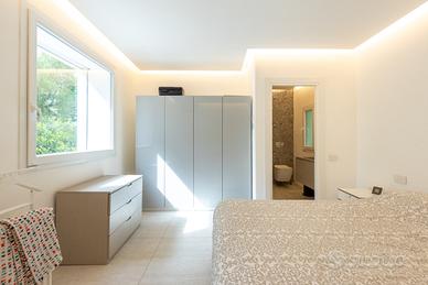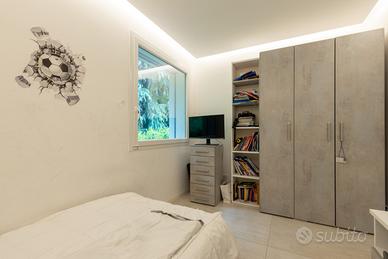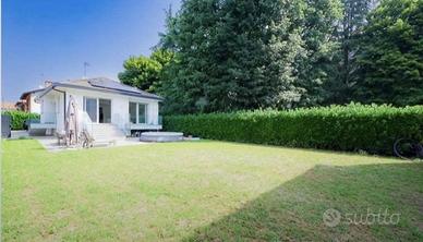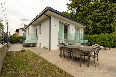 (Riferimento: 116) Nuova ed esclusiva Villa singola di ampia metratura disposta su un unico livello abitativo, immersa nel verde e circondata da un ampio giardino privato. La Villa in oggetto è situata in zona riservata, tranquilla e residenziale, a pochi minuti dal centro e dai principali servizi. La soluzione, libera su quattro lati, gode di un ampio giardino privato di circa 500 mq con la possibilità di realizzare una piscina interrata. E' composta da un grande e luminoso doppio soggiorno che affaccia direttamente sul giardino, cucina separata all'americana con isola, zona pranzo, disimpegno che porta alla zona notte, grande camera matrimoniale con bagno privato finestrato, altre due spaziose camere da letto e secondo bagno anch'esso finestrato. Tramite una comoda scala interna si accede alla taverna dove troviamo un bagno finestrato, un ripostiglio, una cantina, una lavanderia/stireria, una zona guardaroba con cabina armadio ed uno spazio ampio utilizzabile a seconda delle proprie necessità. Elegante villa che si classifica in classe A, le tecnologie usate permetteranno di vivere con consumi ridotti e senza sprechi. Tecnologia moderna, eleganza e pregiate finiture per garantire un ottimo livello di comfort e benessere abitativo. Villa dotata delle migliori soluzioni tecnologiche ed estetiche, caratterizzata da materiali e finiture di alto livello, da capitolato di pregio e da una progettazione interna funzionale e curata nei minimi dettagli. Dotata di cappotto esterno, isolamento acustico e termico, di tecnologie avanzate come pompa di calore per riscaldamento e raffrescamento ad aria, di serramenti ad alte prestazioni, di riscaldamento radiante a pavimento, di impianto a pannelli fotovoltaici, di impianto antintrusione e di domotica. Posti auto tre. La proprietà sorge in posizione strategica, comoda con la Statale SS36 che collega Lecco e Milano e con la SP6 Monza-Carate.