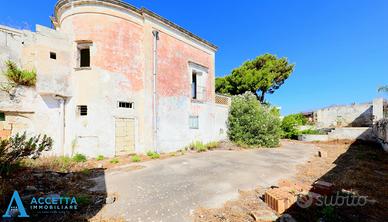 (Riferimento: 25000) Proponiamo in vendita a Taranto in località Lama, un caratteristico Casale d'Epoca a Due Passi dal Mare. Situato in una delle zone più suggestive di Taranto, a soli 550 metri dal mare, nella tranquilla contrada Carelli, il casale si sviluppa su due livelli, per una superficie catastale di circa 670 mq., distribuiti in ambienti ampi, molti dei quali presentano caratteristici soffitti a volta, oltre una grande terrazza al primo piano; mentre al piano interrato troviamo una cantina di circa 150 mq., catastali, che rappresenta un ulteriore spazio da sfruttare. La proprietà si completa con un' ampia area giardinale esterna che avvolge il casale, provvista di un accesso carrabile da strada privata ed un accesso pedonale da Via Girasoli. Questa struttura immobiliare rappresenta un'opportunità per imprenditori o privati, che desiderano intraprendere un progetto di ristrutturazione; ideale sia per la realizzazione di una struttura ricettiva o per una o più residenze.