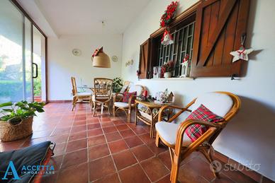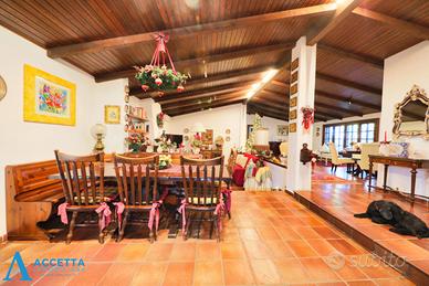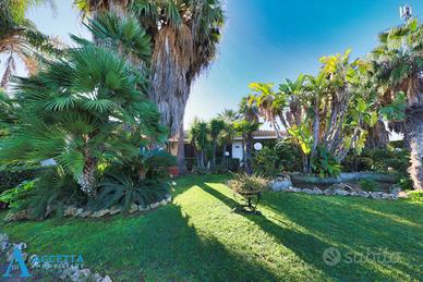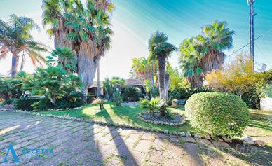 (Riferimento: 45001) OPPORTUNITÀ UNICA! PRESTIGIOSA VILLA SU UNICO LIVELLO CON AMPIO GIARDINO E CARATTERISTICO TETTO SPIROVENTE IN LEGNO - IN LOCALITA' SAN VITO, TARANTO In zona residenziale di San Vito, proponiamo in vendita una magnifica villa unifamiliare indipendente, realizzata con raffinate finiture e caratterizzata da scelte architettoniche eleganti e funzionali, pensate per garantire il massimo comfort abitativo e con caratteristico tetto spiovente il legno. La proprietà, sviluppata interamente su un unico livello, è circondata da un ampio e curato giardino, impreziosito da piante ornamentali di pregio e prato. Internamente l'abitazione si compone di una spaziosa doppia zona giorno con camino, un pratico cucinotto, una luminosa serra climatica, un accogliente patio e un vano adibito a camera o studio. Un disimpegno conduce alla zona notte, composta da una suite matrimoniale con cabina armadio e bagno privato, due ulteriori camere da letto e un secondo bagno. Completa la proprietà un funzionale doppio garage. La villa si distingue per gli ampi spazi, il comfort elevato e le rifiniture di grande pregio; è inoltre dotata di impianto di riscaldamento autonomo e infissi in legno all'inglese. L'immobile si presenta in buone condizioni generali.