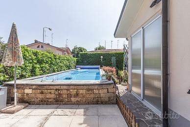 (Riferimento: AP25091) In Centro a Dosso, in tranquilla zona residenziale, graziosa villa singola con finiture di pregio, edificata nel 1998 con ristrutturazione per ampliamento del primo piano nel 2011, caratterizzata da spazi generosi, alto risparmio energetico, giardino, garage doppio e piscina privata. L' abitazione è disposta su 2 livelli, predisposta per eventuale divisione in 2 unità abitative, attualmente composta da ampio e luminoso soggiorno con cucina abitabile, doppi servizi, studio, ripostiglio, 2 camere da letto e portico al piano terra, soggiorno, cucina abitabile, studio, 2 camere da letto, doppi servizi e terrazzo al piano primo. La villa gode di porta blindata, infissi con vetrocamera, zanzariere, impianto di allarme, riscaldamento a pavimento con caldaia a pellet, solare termico, impianto fotovoltaico da 20 KW, cappotto termico. Visibile da subito previo appuntamento.
