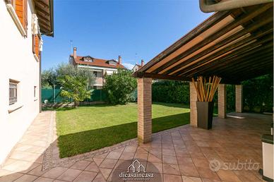 PER ULTERIORI INFORMAZIONI CONTATTARE FILIALE FAVARO VENETO: MESTRE PERIFERIA, ZONA VIA PORTO DI CAVERGNAGO. VILLA SINGOLA CON STRUTTURA RICETTIVA, IDEALE ANCHE PER DUE NUCLEI FAMILIARI. Vi proponiamo un prodotto più unico che raro. Villa singola sviluppata su tre livelli, con dependance esterna adibita a locazione turistica e giardino di proprietà. La casa si sviluppa al piano terra con grandi locali ad uso magazzino, trasformabili all'occorrenza in seconda abitazione, con bagno già regolarizzato. Al piano primo grande zona giorno con cucina a vista di oltre 65mq, due matrimoniali, un bagno. Al piano secondo con accesso tramite scala arredo posta in soggiorno, terza matrimoniale travata a vista con bagno. A completare la proprietà ampio giardino con zona parcheggio fino a 5 auto, garage, e dependance travata a vista dove sono state realizzate due camere matrimoniali con bagno, entrambe ad oggi utilizzare come locazione turistica, ma convertibili in altra unità immobiliare all'occorrenza. Finiture ricercate in tutta l'abitazione, ideale per nucleo familiare numeroso, per due nuclei, e per chi cerca un abitazione dove poter gestire anche come lavoro una piccola attività ricettiva. Introvabile per tipologia e grado di finitura. RIFERIMENTO: V001546 CLASSE ENERGETICA: E 119,4 kWh/m3 a