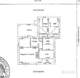 L'abitazione è composta da tre camere da letto, un soggiorno, una cucina,due bagni, una lavanderia,una taverna. una tettoia,un ripostiglio ed un disimpegno.