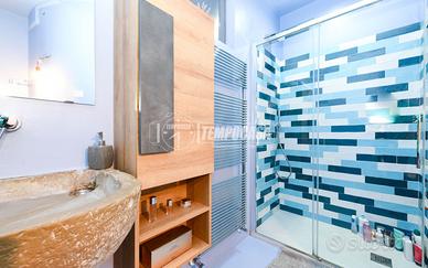 - Al piano terra, un magnifico open space accoglie la zona cucina e soggiorno, caratterizzato da una vetrata a tutta altezza che illumina l'ambiente e crea continuità con l'esterno. Anche qui, è presente un secondo bagno elegante e funzionale.