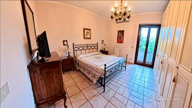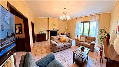 Villa singola a 4,5km da Viterbo,in contesto riservato.Immobile su tre livelli, collegati tra loro da comoda e luminosa scala interna,per una superficie totale calpestabile di 275 mq.Piano rialzato: ingresso, soggiorno con termocamino, cucina abitabile con veranda, camera matrimoniale, camera singola e bagno.Piano primo: soggiorno, cucina, camera matrimoniale con cabina armadio e bagno.Piano seminterrato: salone, cucina abitabile, camera matrimoniale, camera singola e bagno,oltre ampio garage.Inoltre i piani rialzato e primo sono serviti su tre lati da ampi terrazzi, uno anche coperto.Ottimo stato di conservazione, subito abitabile.Caldaia pellet A+ , termocamino, caldaia GPL, condizionatori ultima generazione.Persiane e finestre in alluminio color legno con doppi vetri.Porte in noce massello nazionale.Impianto d'allarme, cancello carrabile elettrificato oltre al pedonale.Giardino con molte piante di alto fusto, completamente recintato e illuminato,di 6000 mq.Serbatoio GPL interrato, casaletto di pertinenza 25 mq. per ricovero attrezzi,orto familiare, pollaio, ricovero per cani,pozzo per irrigazione.Classe energetica del fabbricato:A1.Si prega astenersi Agenzie immobiliari.