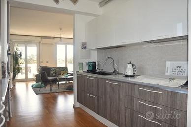 Al secondo piano troviamo una grande terrazza pavimentata vista mare che si presta a molteplici soluzioni per godere della vista mare tutto l'anno.