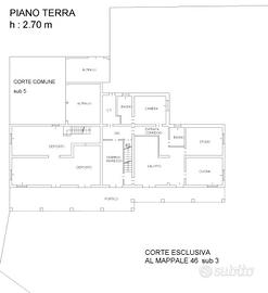 L'unità abitativa situata al piano terra si sviluppa con un ingresso con portoncino in legno direttamente sul salotto, due cucine abitabili, due camere e doppi servizi igienici.