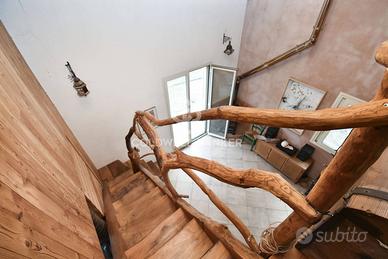 Il piano terra offre circa 100 metri quadrati di spazio abitabile, con unampia zona open space che ospita la zona relax e la cucina moderna. Completano il piano una camera da letto e un servizio. Attraverso una scala artigianale, creata da un artista, si raggiunge il piano superiore, caratterizzato da un ambiente spazioso e due camere da letto, perfette per tutta la famiglia.