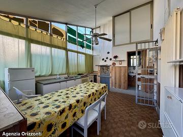 A Lido degli Scacchi, a soli 250 metri dal mare e vicino al noto Bagno Sagano, proponiamo in vendita una porzione di quadrifamiliare con grande giardino privato e posto auto interno. L'immobile offre spazi generosi e una distribuzione ideale per chi cerca una soluzione comoda per il mare ma con la privacy di una casa indipendente e senza spese condominiali. All'ingresso troviamo una ampia veranda, attualmente utilizzata come cucina, dotata di un pratico bagno di servizio e di un camino barbecue perfetto per pranzi e cene all'aperto. Si accede poi alla zona giorno con una luminosa sala e un cucinotto, ora adibito a ripostiglio, con ulteriore accesso esterno. Completano il piano terra un utile vano sottoscala. Al primo piano si sviluppa la zona notte composta da due camere da letto e un bagno finestrato con doccia. L'abitazione è dotata di riscaldamento autonomo con caldaia e, pur essendo perfettamente funzionale, necessita di alcuni interventi di personalizzazione e riammodernamento, offrendo così un ottimo potenziale per creare una casa al mare su misura.