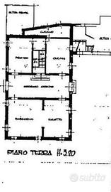 -Al piano terra si compone di: atrio, soggiorno, due sale da pranzo, cottura, W.C., ripostiglio, disbrigo, vano scala.