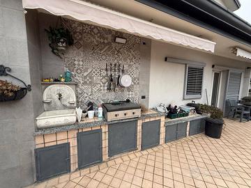 Ampio cortile esterno con attacchi cucina e vari punti acqua. Veranda amovibile sul retro della proprietà.