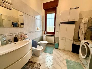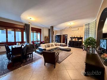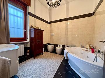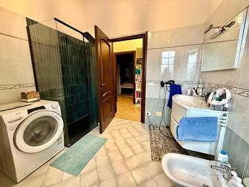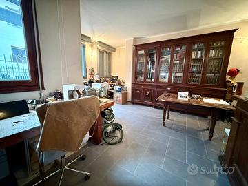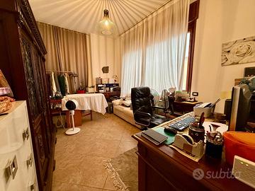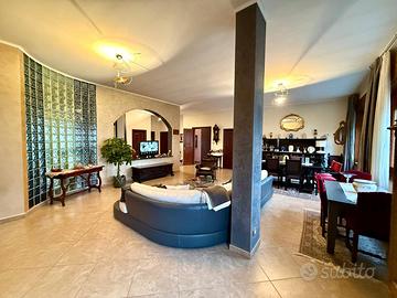 Il piano abitativo, di circa 300 mq, accoglie un importante salone doppio, luminoso e rappresentativo, una cucina abitabile con locale lavanderia dedicato, bagno di servizio e studio (possibilità realizzo 5 camera). La zona notte, ben disimpegnata, offre quattro camere matrimoniali di generose dimensioni, un bagno padronale e un ulteriore bagno a servizio delle camere, garantendo comfort e privacy per tutta la famiglia.