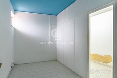 Al primo piano, un appartamento residenziale offre una graziosa veranda, ingresso su zona soggiorno/pranzo con cucinino, tre camere da letto e un bagno finestrato.