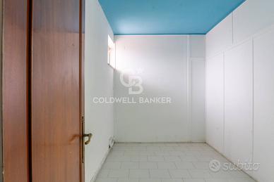 Al primo piano, un appartamento residenziale offre una graziosa veranda, ingresso su zona soggiorno/pranzo con cucinino, tre camere da letto e un bagno finestrato.