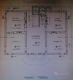 Al piano terra, cinque vani e un piccolo bagno. Comprende attualmente: cucina, studio, sala da pranzo, salotto, più una grande sala di ingresso.