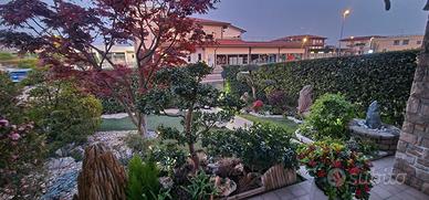 Piano terra amplia lavanderia attrezzata ,bagno, taverna arredata ,stanza adibita a ripostiglio Piano primo Ingresso, soggiorno con camino e climatizzatore, cucina arredata, bagno Piano secondo Tre camere da letto con parquet di cui una allestita a cabina armadio, bagno Metratura circa 75 mq a piano Esterno Giardino fronte e retro con irrigazione automatica rifatto con erba sintetica e piantumato, laterale ampio spazio piastrellato Verrà ceduto parzialmente arredato Impianto allarme Climatizzata Totalmente indipendente Serramenti sostituiti tutti Bagni rifatti tutti Caldaia recente Box triplo con basculante elettrica no agenzia Prezzo trattabile