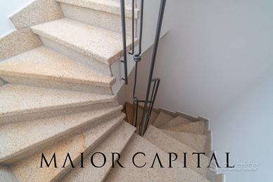 Gli spazi interni sono collegati sia da una scala interna che da una esterna e comprendono due appartamenti trilocali, raffinati e inondati di luce naturale grazie alle ampie vetrate. Al primo piano, il soggiorno si apre su una veranda coperta con splendida vista mare, ideale per momenti di relax o pranzi allaperto. Al piano terra, invece, la zona giorno si estende su una veranda coperta e sul giardino, un ambiente perfetto per i bambini o per accogliere amici e familiari.