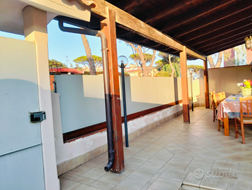 La villa in vendita è situata al centro di baia Domizia in viale dei Pini in zona residenziale dotata di ogni servizio; La villa è composta da tre camere da letto, due bagni, di cui uno con doccia , un ampio salone e una cucina abitabile che affacciano su di un patio di mq 40. Esternamente ci sono circa 100 mq di spazi pavimentati con ingresso sia pedonale che carrabile con ampia possibilità di parcheggiare auto. È situata lato mare distante circa 200 metri dalla spiaggia. Confortevole e provvista di doccia esterna , aria condizionata e cisterna gpl. Capienza fino a 10 posti letto.