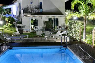 Rif: BCC3 Classe energetica: C Siamo entusiasti di presentarvi una straordinaria villa singola in vendita a Balestrate, attualmente adibita a struttura ricettiva e situata a soli 1 km dal mare. Questa elegante proprietà si estende su un lotto di circa 3.200 mq, offrendo un ambiente unico e accogliente, perfetto sia per una residenza privata che per un'attività ricettiva di successo. L'ingresso della villa è caratterizzato da due cancelli, che conducono a due ampi parcheggi, assicurando massima comodità e accessibilità per gli ospiti. All'esterno, la vera protagonista è l'area piscina, completa di un ampio patio solarium, dove potersi rilassare e godere delle giornate di sole. Accanto ad essa, troverete una jacuzzi per 7 persone, perfetta per momenti di puro relax, e un'area barbecue, ideale per organizzare festose grigliate con amici e familiari. Il tutto è immerso in un contesto verdeggiante, arricchito da alberi e piante ornamentali, insieme a un suggestivo prato all'inglese che crea un'atmosfera di tranquillità e armonia. La villa è suddivisa in tre unità immobiliari, tutte ben curate e dotate di ogni comfort. L'abitazione principale si distingue per il suo ampio salone con travi a vista, che conferisce un tocco elegante e rustico. Adiacente, troviamo un angolo cottura funzionale che offre il comodità necessaria per preparare deliziosi pasti. Da qui, si può accedere a un portico spazioso, perfetto per pranzi e cene all'aperto, creando un'atmosfera conviviale per trascorrere del tempo con gli affetti più cari. La zona notte comprende tre camere da letto, di cui una dotata di bagno en suite, cabina armadio e un ampio terrazzino con vista mare, per risvegliarsi ogni giorno con una splendida vista. È presente anche un ulteriore bagno con doccia, comodo e funzionale. Le altre due unità immobiliari sono anch'esse concepite per il massimo comfort, dotate di un'area giorno con cucina ben attrezzata, una camera da letto accogliente e un comodo bagno....