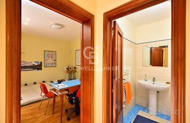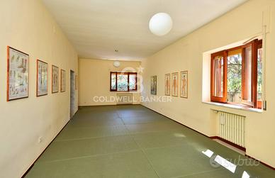 Al primo piano abbiamo due grandi camere da letto, uno studio e due saloni dalle notevoli dimensioni con altrettanti bagni. Da sottolineare la natura assolutamente indipendente del piano, in quanto dotato di accesso indipendente padronale con comoda scala e terrazzino sul giardino.