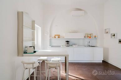 Limmobile si sviluppa su due superfici oltre il terrazzo, date le dimensioni più che generose, si compone di più appartamenti. Al piano terra/rialzato, completamente ristrutturato in maniera sobria ed elegante dedicato e destinato a casa vacanze di pregio, frequentato da chi apprezza sobrietà, lusso minimale e riservatezza. Il piano superiore è abitato dai proprietari.