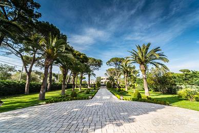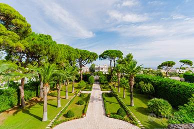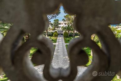 Varcando il cancello principale ci si ritrova trasportati indietro nel tempo, al centro di un viale con alberi secolari, un parco di impronta mediterranea, un vero e proprio mosaico verde.