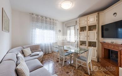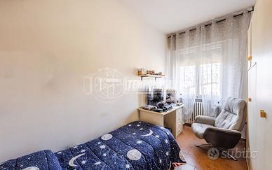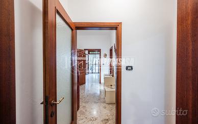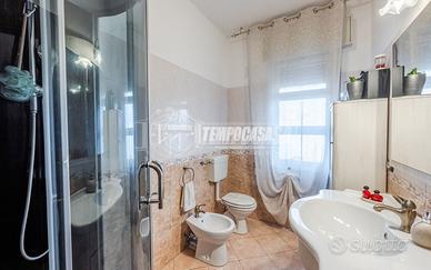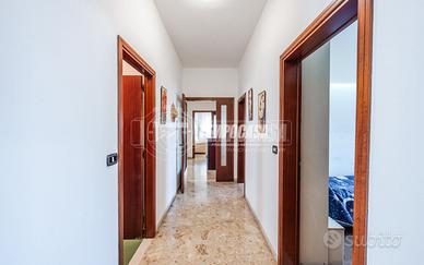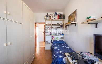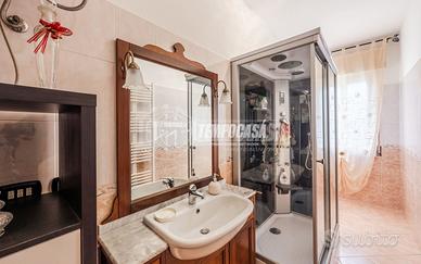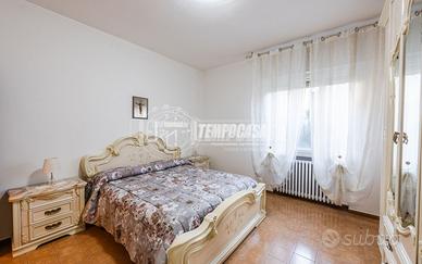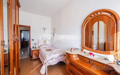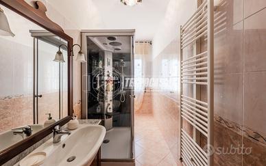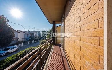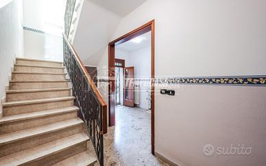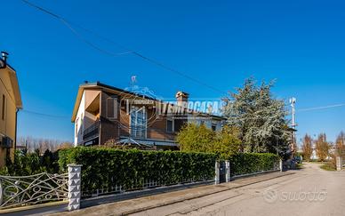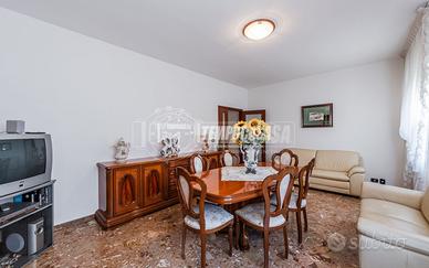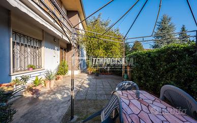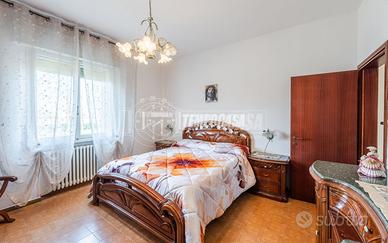 Trattasi di una villa bifamiliare, circondata su quattro lati da un giardino esclusivio di buone dimensioni, villa composta da due Appartamenti situati uno al piano terra ed uno al piano primo. L'appartamento al piano terra presenta Ingresso (6,3 Mq), Soggiorno (16,4 Mq), Cucina semi-abitabile (8,2 Mq), disimpegno notte (2,1 Mq) che conduce alla Camera da letto matrimoniale (15,5 Mq) e Bagno (4,6 Mq). L'androne comune (6,6 Mq) del piano terra ed il vano scala (11,3 Mq) ci conducono all'appartamento del piano primo, composto da Ingresso (7,9 Mq), Sala da Pranzo (17,9 Mq) con Balcone (con ringhiera riverniciata), Cucinotto (6,4 Mq), Soggiorno (22,6 Mq), Disimpegno notte (7,9 Mq) che ci conduce alle quattro Camere da letto (rispettivamente 14,9 Mq - 9,1 Mq - 9,1 Mq e 9 Mq), Anti-Bagno (1,3 Mq), Bagno (6,4 Mq) e Ripostiglio. Completano la proprietà i vani accessori posti al piano terra, quali due Cantine, Lavanderia, Ripostiglio sottoscala, Garage e secondo Box auto presente all'interno del giardino privato.