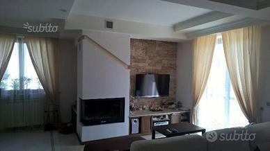 Vendo villa bifamiliare con la vista stupenda sul paese, libera da 4 lati, completamente ristruttarata nel 2007. 5 camere da letto, due bagni, grande sala con camino termoventilato, area condizionata, cucina separata. Pavimento zona ospite in piastrelle Versace, zona notte parquet laminato. Tre terrazze grande con la vista irrepetibile, giardini da due lati, pezzo di bosco retro. Due garage.