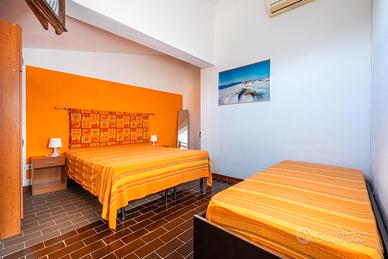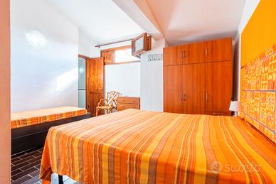 L'interno di circa 130 mq, si sviluppa su due piani: al piano terra troviamo il luminoso salone con camino e l'accogliente zona pranzo, una camera da letto tripla/quadrupla e il bagno. Al primo piano, a cui si accede attraverso la scala interna, veniamo accolti da altre due camere da letto, una tripla/quadrupla, l'altra doppia e il secondo bagno.