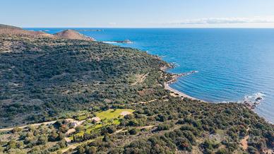 L'abitazione, perfettamente incastonata tra l'incontaminata macchia mediterranea e le profonde acque azzurre di alcune delle spiagge più belle di Villasimius, dista poco più di 50 mt dal mare: a pochi minuti a piedi dall'arenile di Porto Luna e dalla splendida perla di Punta Molentis.